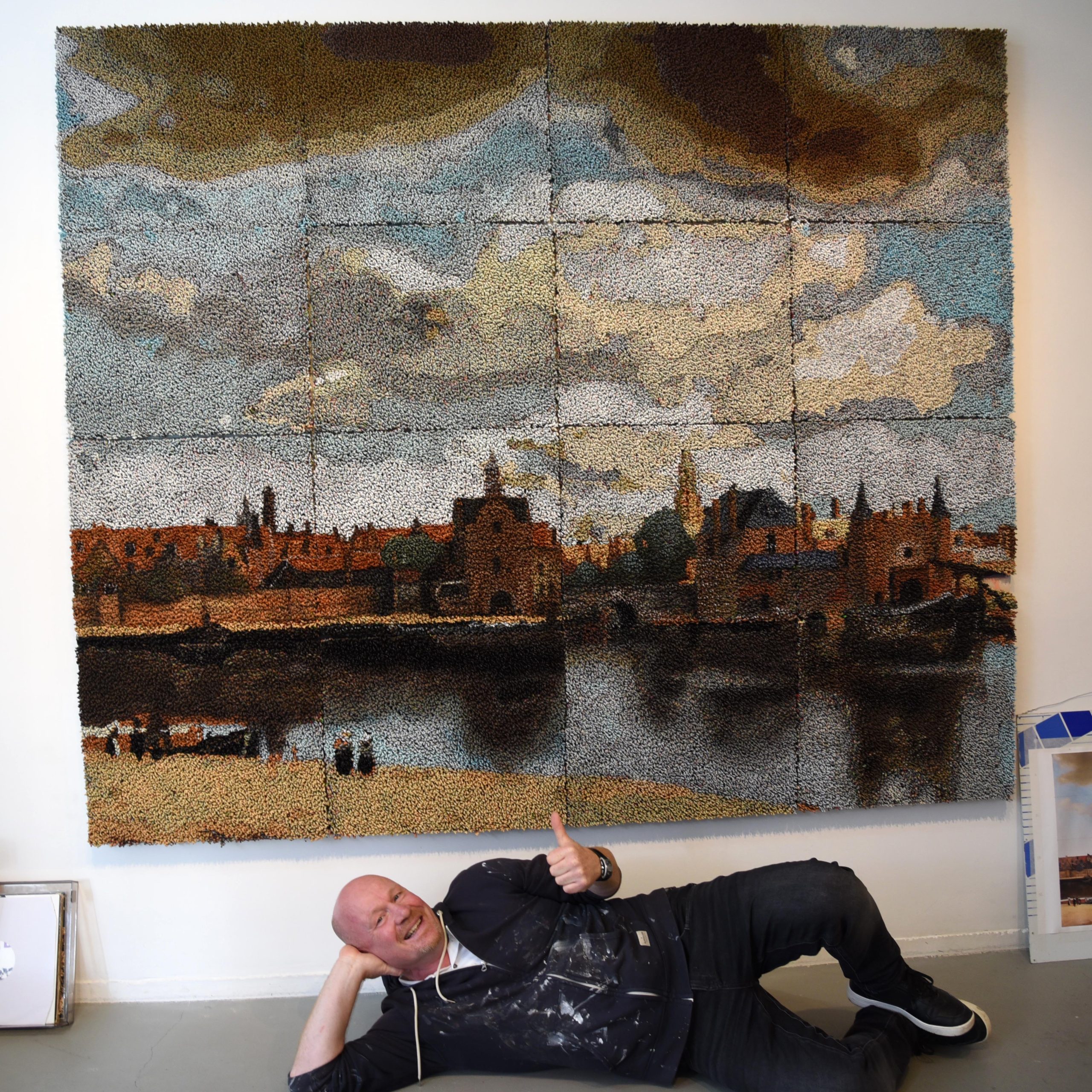 Tijdens een druk bezochte expo op 1 November zijn de laatste poppetjes geplakt. De komende weken ben ik druk aan het werk om “Wij zijn Delft” te perfectioneren. Veel dank voor alle hulp, plakkers en een hartverwarmende saamhorigheid. Schrijf vast in je agenda: in het weekend van 13 en 14 december is het Vermeercentrum Delft gratis te bezoeken en kan iedereen het werk komen zien. Hopelijk zie ik jullie daar! Foto: Frans Hofstede