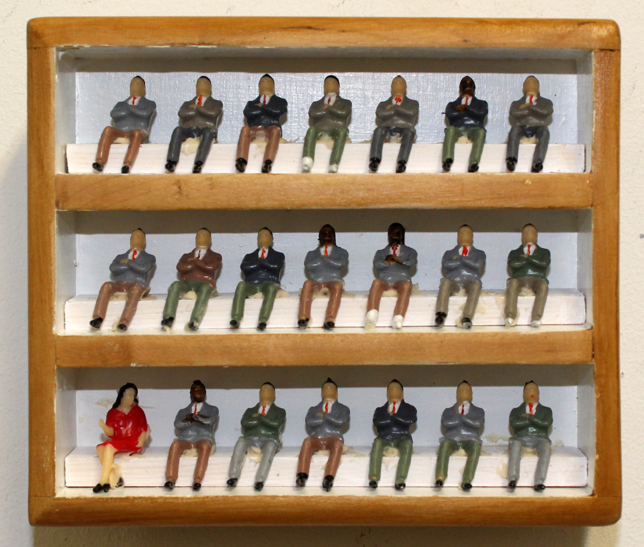 Nieuw! 12 x 14 cm, plastic poppetjes in vintage bakje. Deze wereld wordt nog steeds grotendeels bestuurd door grijze, blanke mannen. Of vrouwen het beter zou doen weet ik niet maar ze zouden het niet veel slechter kunnen dan wij mannen. We hebben in 80 jaar van deze wereld een ongelofelijke puinhoop gemaakt.