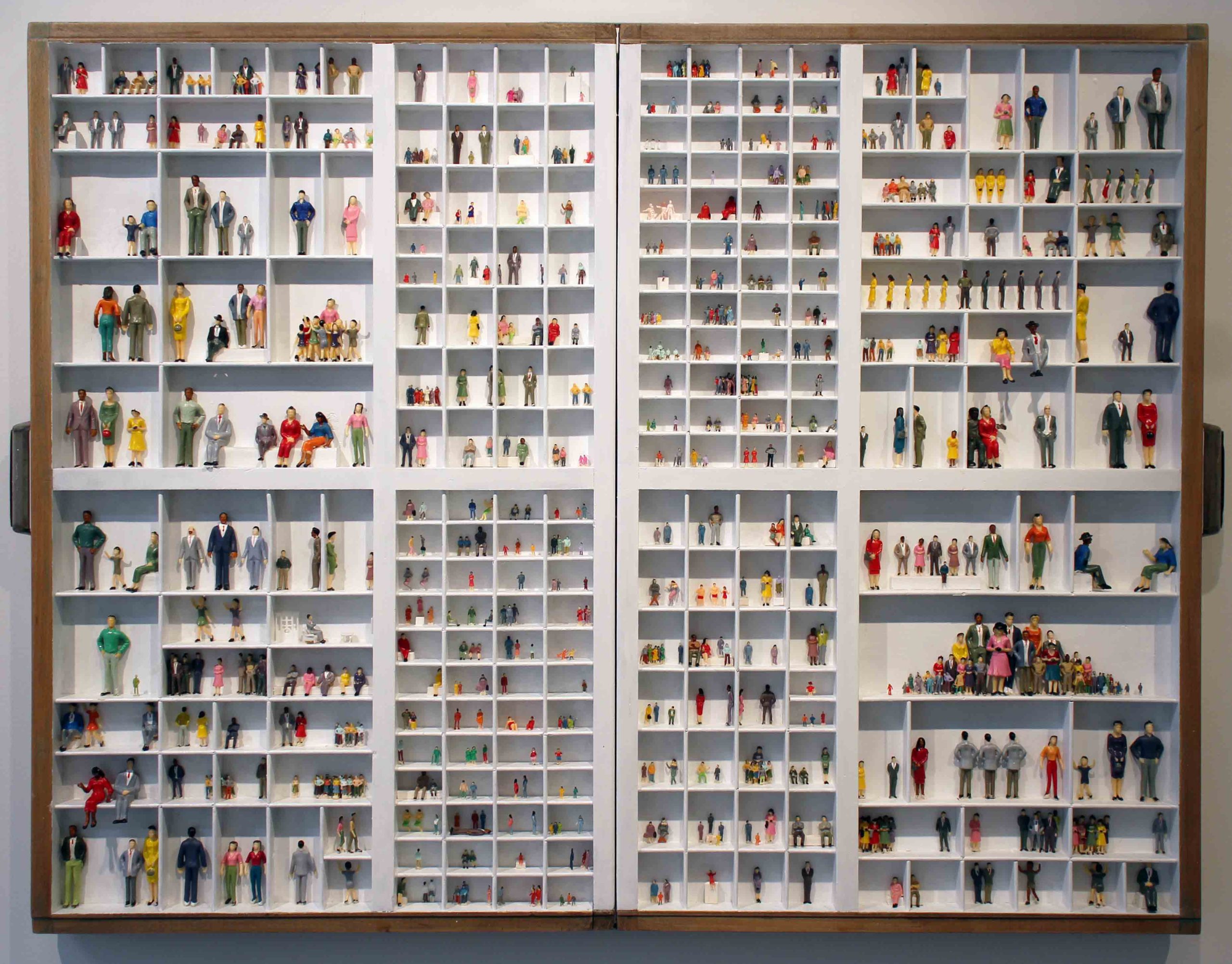 Materiaal: Plastic poppetjes en acrylverf in letterbakken